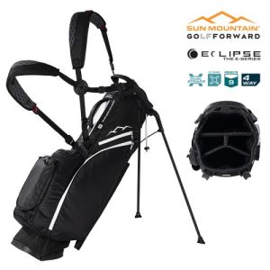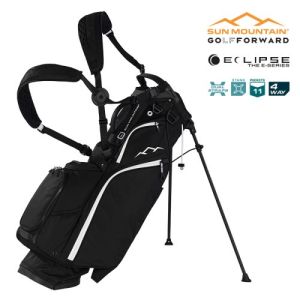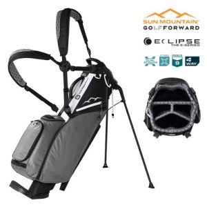 Sun Mountain offers top-tier waterproof golf bags like the Sun Mountain H2NO Lite, featuring fully sealed seams, waterproof zippers, and lightweight design for easy carrying.